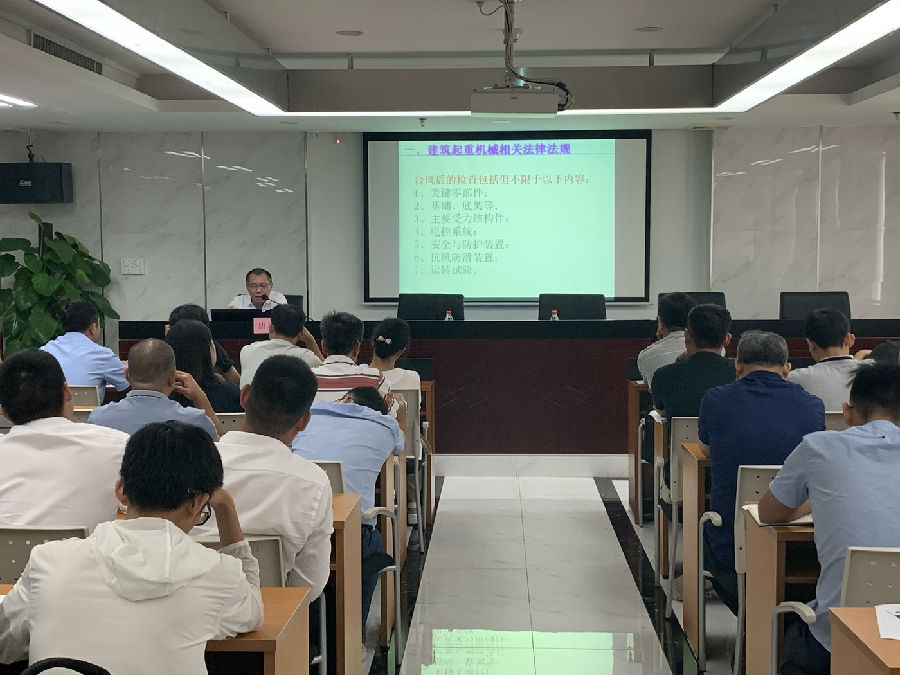 唐老師從建筑起重機械相關法律法規規程宣貫、簡述施工現場起重機械資料存在問題、起重機械專項施工方案編制依據、編制要求、編制內容的宣貫等方面做了詳細而生動的講解。圍繞建筑施工大型機械的操作規范、施工技術、安全管理以及資料管理等方面進行專題宣貫,并對建筑起重機械事故案例簡介、建筑起重機械事故案例剖析進行深入剖析,以讓大家在大型機械安全、技術管理,防范重大事故發生等環節有一個全面系統的了解。