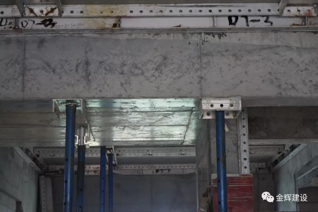 華創(chuàng)項(xiàng)目的鋁模工藝應(yīng)用是集團(tuán)公司首例,與傳統(tǒng)的木模板澆筑工藝相比,鋁模能提高供砼工程實(shí)體的精度,取消傳統(tǒng)抹灰工藝,減少樓層濕作業(yè),為精裝修穿插施工提供條件。華創(chuàng)項(xiàng)目在摸索實(shí)踐中,通過多次與設(shè)計(jì)、甲方、施工班組的技術(shù)討論會(huì)議,將鋁模深化設(shè)計(jì)做精、做細(xì)。入戶門、過梁在鋁模深化中設(shè)置,與主體結(jié)構(gòu)一次澆筑成型,既提高了工程質(zhì)量,又減少了二次結(jié)構(gòu)施工。外墻門窗固定片壓槽、滴水線壓槽、欄桿杯口壓槽在模板處預(yù)留,使壓槽一次成型,免除后期開槽,與主體結(jié)構(gòu)一次澆筑成型。