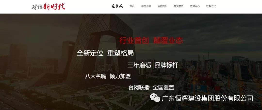 2019年6月,中央電視臺CCTV《對話新時代》欄目組向恒輝建設集團發出邀請,邀請恒輝建設作為廣東民營建筑行業的典型示范企業,參加“致敬建國70周年”國慶檔節目錄制。