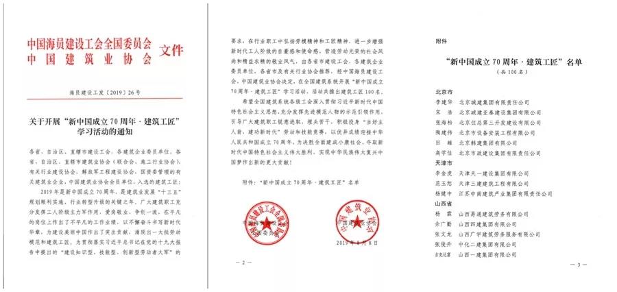 近日,由中國(guó)海員建設(shè)工會(huì)全國(guó)委員會(huì)、中國(guó)建筑業(yè)協(xié)會(huì)在全國(guó)建筑系統(tǒng)聯(lián)合開(kāi)展的“新中國(guó)成立70周年·建筑工匠”學(xué)習(xí)活動(dòng)中,我司鋼結(jié)構(gòu)公司王志超同志成功入選100名建筑工匠,成為廣東省國(guó)資委系統(tǒng)唯一獲此殊榮的優(yōu)秀建筑工匠。