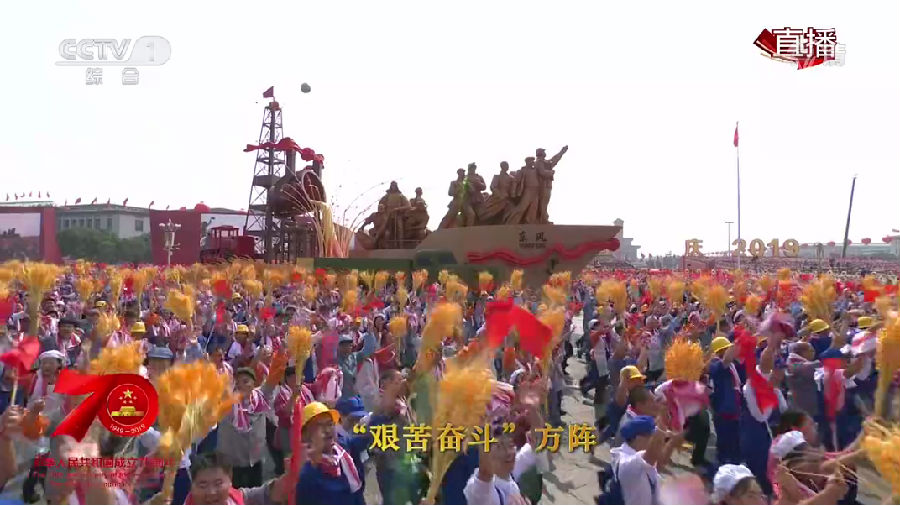 記得有一次彩排結(jié)束,我們返回中國(guó)石油大學(xué)集合地點(diǎn),已經(jīng)凌晨5點(diǎn)。夜班路過(guò)的出租司機(jī)忍不住問(wèn)“你們這么多人在干啥呀?”我多想自豪地回“參加國(guó)慶群游!”對(duì)于我們來(lái)說(shuō),“別人家”的方陣也是神秘的。我們會(huì)捕風(fēng)捉影的討論其他方陣會(huì)是什么樣子。終于,在長(zhǎng)安街第二次聯(lián)排時(shí),我看到10萬(wàn)名群眾、36個(gè)方陣、70組彩車(chē)行過(guò),將祖國(guó)的發(fā)展歷程波瀾壯闊地展現(xiàn)在眼前。此刻我們意識(shí)到,我們是第一時(shí)間看到大閱兵的神秘面紗的人,心情無(wú)比激動(dòng)和驕傲。
