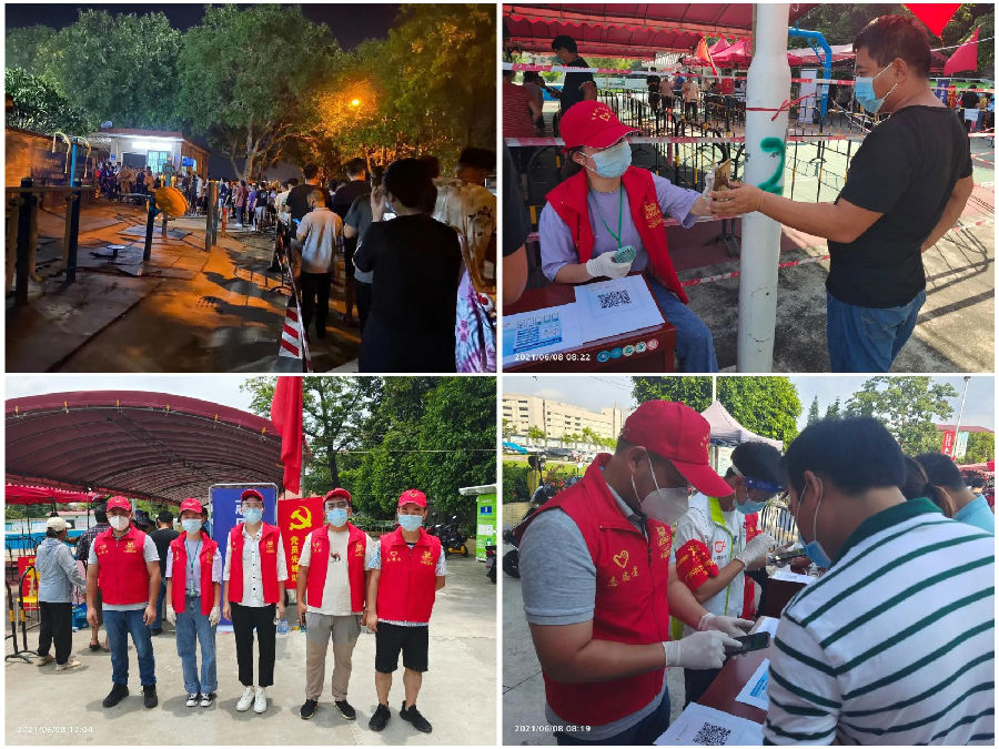 自廣州新型冠狀病毒肺炎疫情發生以來,華南建設主動與當地有關部門、社區取得聯系,以較高的政治站位、勇于擔當作為的姿態,以晝夜奮戰在一線的抗疫戰士為榜樣,積極投身疫情防控志愿服務工作。6月8日,廣州通報感染者涉及的144個重點場所,萬勝圍廣場是其中之一。為阻斷疫情傳播鏈條,萬勝園區開展3天2檢的全民核酸檢測,任務異常繁重。公司黨委一邊主動與園區物業取得聯系,一邊動員員工參與檢測服務??吹饺豪镎心贾驹刚叩男畔⒑?,總部員工紛紛主動請纓,報名參加“萬勝園區抗疫突擊隊”,于6月10日上午,協助核酸檢測工作人員開展了秩序維護、引導咨詢、便民利民等志愿服務。