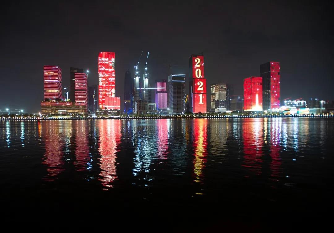 高樓上亮出“征途漫漫,惟有奮斗”“不忘初心,永遠跟黨走”“奮斗百年路,啟航新征程”標語,響應了習近平總書記在講話中強調的“銘記奮斗歷程擔當歷史使命,從黨的奮斗歷史中汲取前進力量”。現場燈光畫面不斷變換,并放映了1921年到2021年年份滾動等動畫點亮了珠江南岸線,以動畫視頻的形式回溯建黨百年史,歡慶建黨100周年。