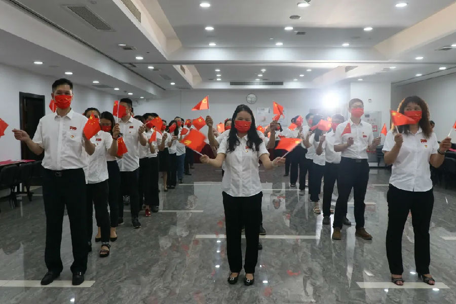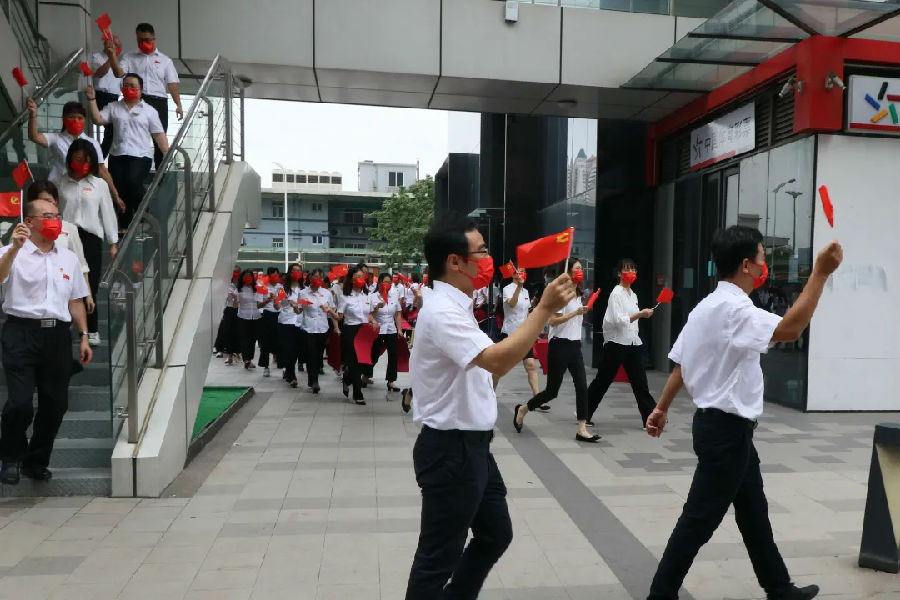 為熱烈慶祝黨的百年華誕,謳歌黨的豐功偉績,公司黨委及領(lǐng)導(dǎo)班子帶領(lǐng)黨員職工,開展了一場極具意義的主題黨日活動。通過“快閃”方式唱響紅歌,百名黨員和職工代表高舉黨旗和國旗,擺出“100”字樣團隊造型,合唱《沒有共產(chǎn)黨就沒有新中國》。歌聲回響,初心向黨,廣州機施集團以歌聲和祝福,祝愿偉大的中國共產(chǎn)黨萬歲!