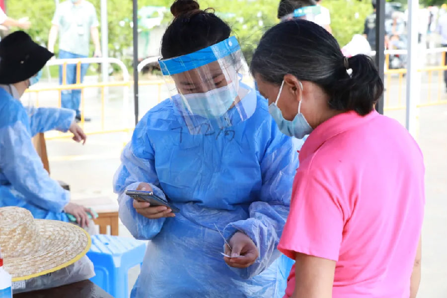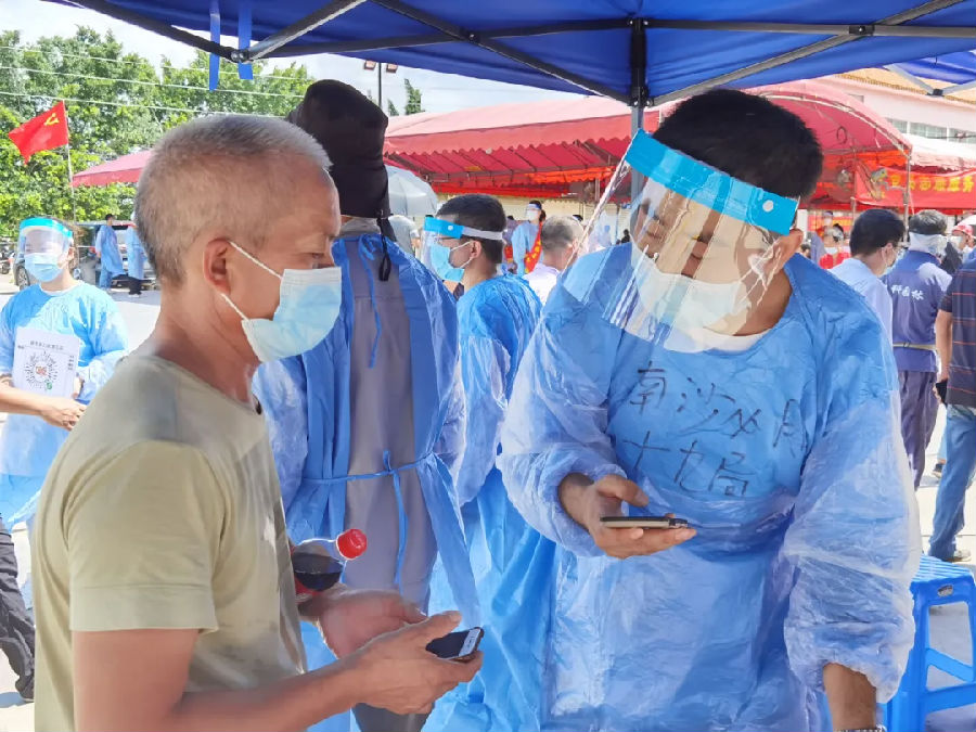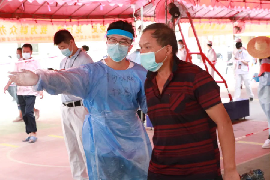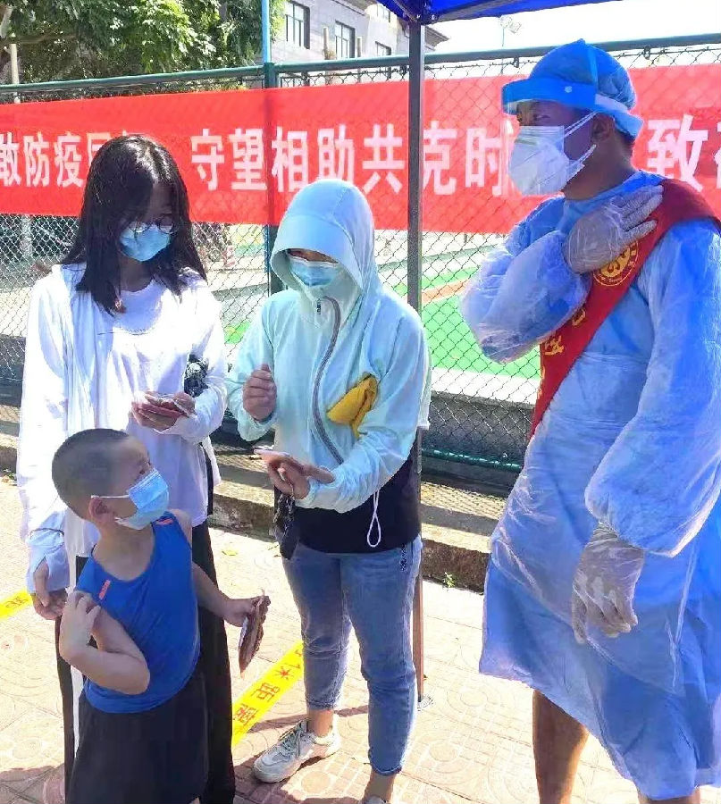 6月11日,廣州市南沙區(qū)珠江街開展第三輪全員核酸檢測,中鐵十九局集團(tuán)廣州工程有限公司高度重視,積極響應(yīng)當(dāng)?shù)卣栒伲⒓丛诠舅鶎偃f頃沙車輛段項(xiàng)目一工區(qū)、二工區(qū)、萬頃沙保稅港項(xiàng)目抽調(diào)職工志愿者51人,到核酸檢測點(diǎn)進(jìn)行疫情防控志愿服務(wù)工作。志愿者們用最短的時(shí)間完成防疫基礎(chǔ)知識培訓(xùn),提前到達(dá)核酸檢測點(diǎn),協(xié)助現(xiàn)場醫(yī)務(wù)人員,組織村民有序開展核酸檢測工作。