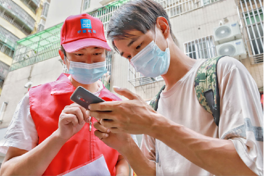 “謝謝,辛苦了。”“真是不錯,謝謝你們年輕人。”此起彼伏的“謝謝”一聲聲記錄在志愿者們心中。核酸檢測現場人山人海,年幼的孩子、腿腳不便的老人等都頂著火辣辣的太陽無言地排著隊。青年志愿者們在這里維持秩序,有的給市民分組和測溫,有的引導市民掃描粵康碼登記信息,有的回應市民咨詢,志愿服務有條不紊地進行著。