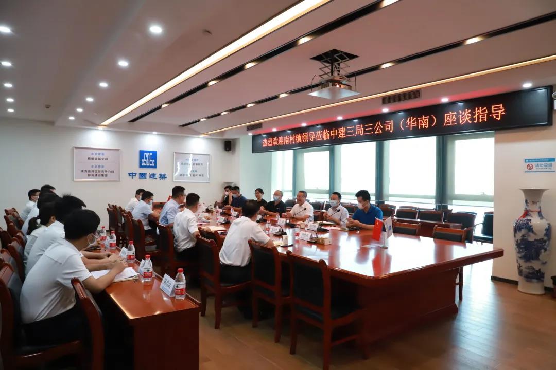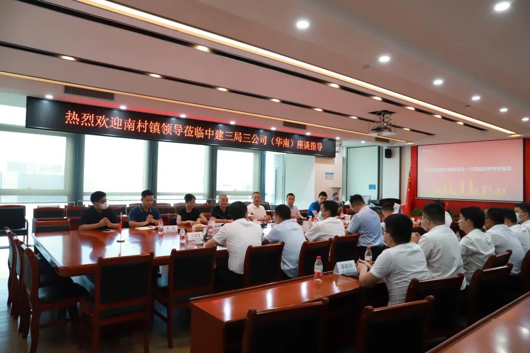 8月2日,番禺區南村鎮黨委書記鄧展鵬,黨委委員、副鎮長凌仲燊,黨委委員王鑫,副鎮長黃杏怡,經濟辦副主任劉碧鵬、李亮一行蒞臨華南公司調研交流。公司副總經理兼華南公司黨委書記、總經理齊從月,華南公司黨委副書記、執行總經理王火華,黨委委員、總會計師鐘劍鋒,副總經理周德庚、王智慧,廣佛片區負責人楊璐,總部各部門負責人參加座談。