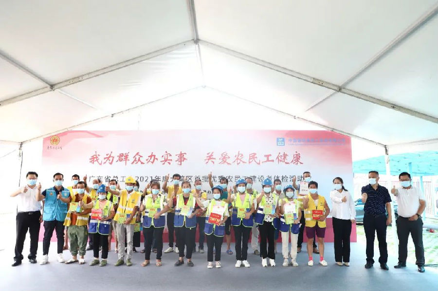 8月4日上午,廣東省總工會(huì)主辦,廣東省工業(yè)工會(huì)承辦,廣東省工人醫(yī)院、中建四局一公司工會(huì)、中建四局一公司廣州分公司工會(huì)聯(lián)合協(xié)辦的廣東省總工會(huì)2021年度大灣區(qū)首批優(yōu)秀農(nóng)民工建設(shè)者體檢活動(dòng)在中建四局白云機(jī)場(chǎng)三期安置房項(xiàng)目(龍口—小布段)舉行。