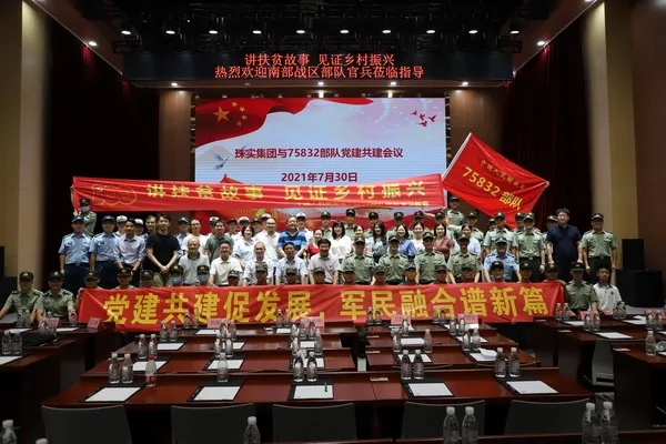 為熱烈慶祝中國共產黨成立100周年,中國人民解放軍成立94周年,弘揚軍民融合的優良傳統,7月30日,珠實集團財務金融中心黨支部、黨工群團聯合黨支部、珠江南平投資公司黨支部與中國人民解放軍75832部隊在南平靜修小鎮開展軍企共建活動。南部戰區某局副局長劉世明、中國人民解放軍75832部隊部隊長杜毓聰,珠實集團黨委副書記丁昌銀、集團財務金融中心、黨委工作部、南平公司有關負責人出席,雙方合計90余人參加了本次活動。