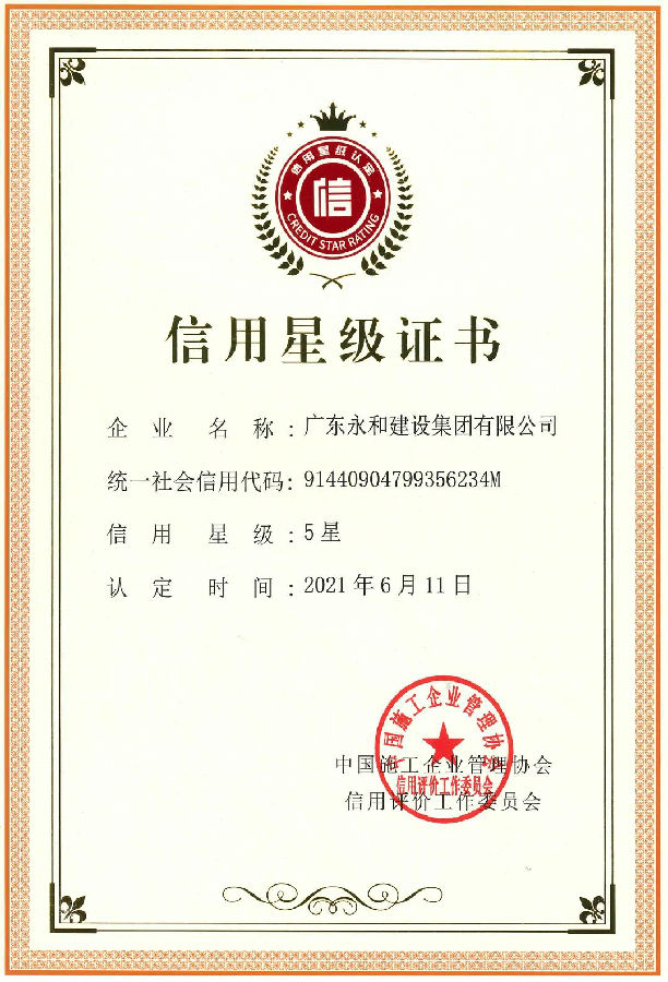 長期以來,永和建設集團高度重視誠信建設,嚴格遵守國家法律法規和行業規范,不斷加強誠信合規體系建設,守法經營,誠信經營,已連續十一年獲評“廣東省守合同重信用企業”、連續十年獲評“守法納稅大戶”等稱號。集團將繼續秉承“以人為本、誠信經營、持續發展、共筑和諧”的經營理念,構筑完善的誠信體系運行機制,堅持誠信立業、穩健行遠,不斷推進工程建設行業的規范運行和企業的高質量發展。