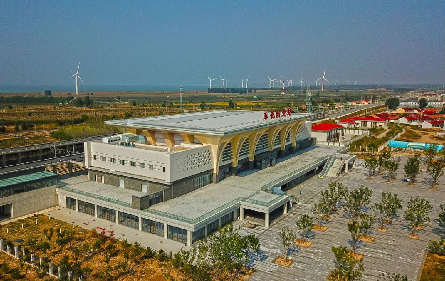 中鐵建設(shè)承建的京張鐵路東花園北站和懷來站是2022年北京冬奧會(huì)的重點(diǎn)配套交通基礎(chǔ)設(shè)施。東花園北站將地方文化元素融入外立面“酒杯花型柱廊”,提取寓意美好的海棠花和牽牛花元素,融合傳統(tǒng)剪紙鏤空工藝,表達(dá)“花園新城”含苞待放之勢。懷來站造型典雅、獨(dú)具匠心,屋檐形似波紋,舒緩優(yōu)美、張力十足,正立面四幅銅雕巨作涵蓋懷來四張名片,極具地域文化特色,站臺(tái)雨棚采用清水混凝土施工工藝,施工一次成型,平整光潔、色澤一致。