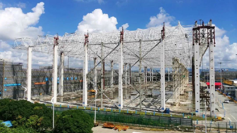 隨著鋼結構屋蓋以10米/小時的速度