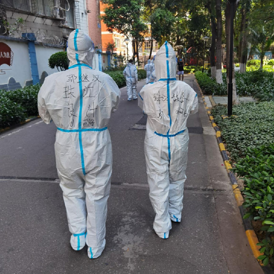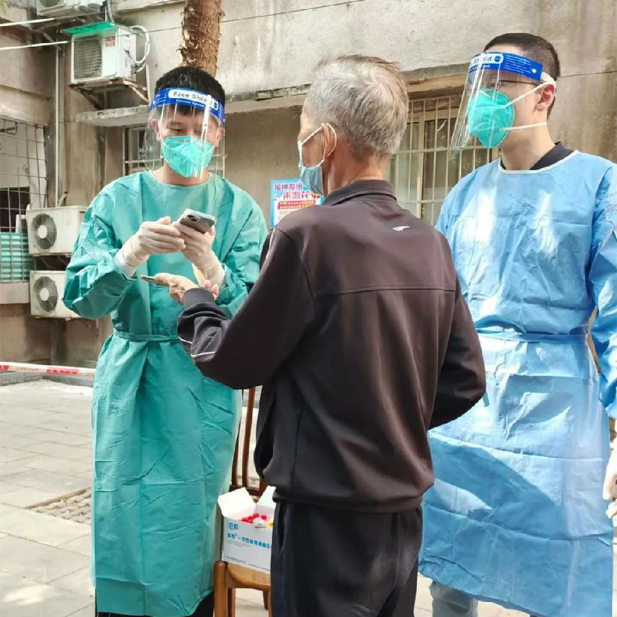4 月 9 日清晨,家住白云區(qū)的超過 30 名珠江設(shè)計干部職工陸續(xù)收到了所住社區(qū)實施封控/管控措施的通知,大伙還沒來得及安頓,就收到了市委鼓勵區(qū)內(nèi)國企干部職工就地下沉抗疫的號召。“設(shè)計二所黨員梁孟曦,我住白云,我報名!”“市場部黨員鄭戈,我也在白云,我可以!”“運營管理部黨員陳荔赟報名”......沒有絲毫猶豫,一支臨時戰(zhàn)疫先鋒隊在線迅速集結(jié)完畢,立即亮身份、投入社區(qū)開展核酸檢測、維持秩序、驗碼測溫、逐戶排查、張貼通知、信息登記工作。