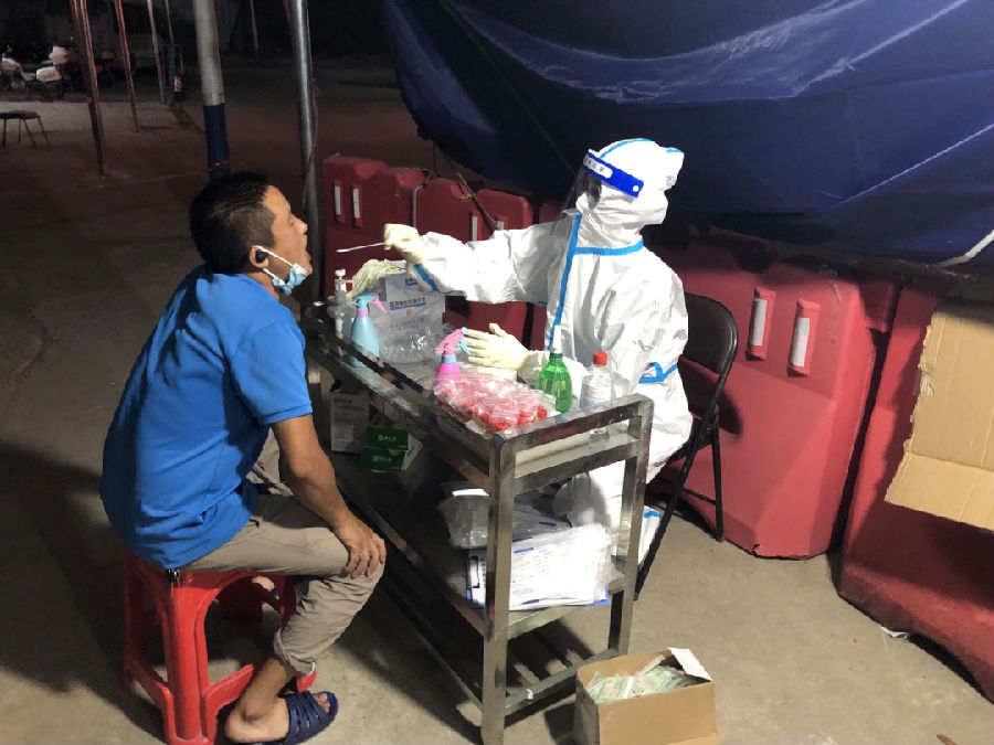 項目部克服客觀條件影響, 60名施工、管理人員全部集中居住在臨時生活區內,并安排專人就近購置生活必需品,切實做好現場人員生活保障工作。對辦公區域及生活區域每日定時消毒消殺,并實行消殺臺賬管理,徹底根除防疫死角。人員實行分餐管理,嚴禁外出就餐、謝絕外來用餐,避免人員扎堆、聚集。協調當地管理部門組織項目部全體人員到指定地點檢測核酸并實行“一天一檢”。所有人員嚴格按照“3米外、1米線”要求排隊采樣。10月以來,共對全體項目部人員檢測2108人次,檢測結果均為陰性。