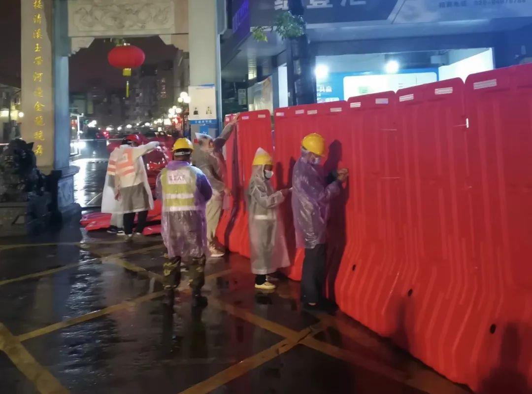 11月4日晚,廣州市番禺區防控辦發布管控通告,接到緊急任務令的項目部,短時間內迅速調集49名人員和口罩、雨衣、雨鞋等物資,連夜馳援鐘村街道管控區開展圍蔽工作。此外,項目部還捐贈了200個水馬助力地區疫情管控。