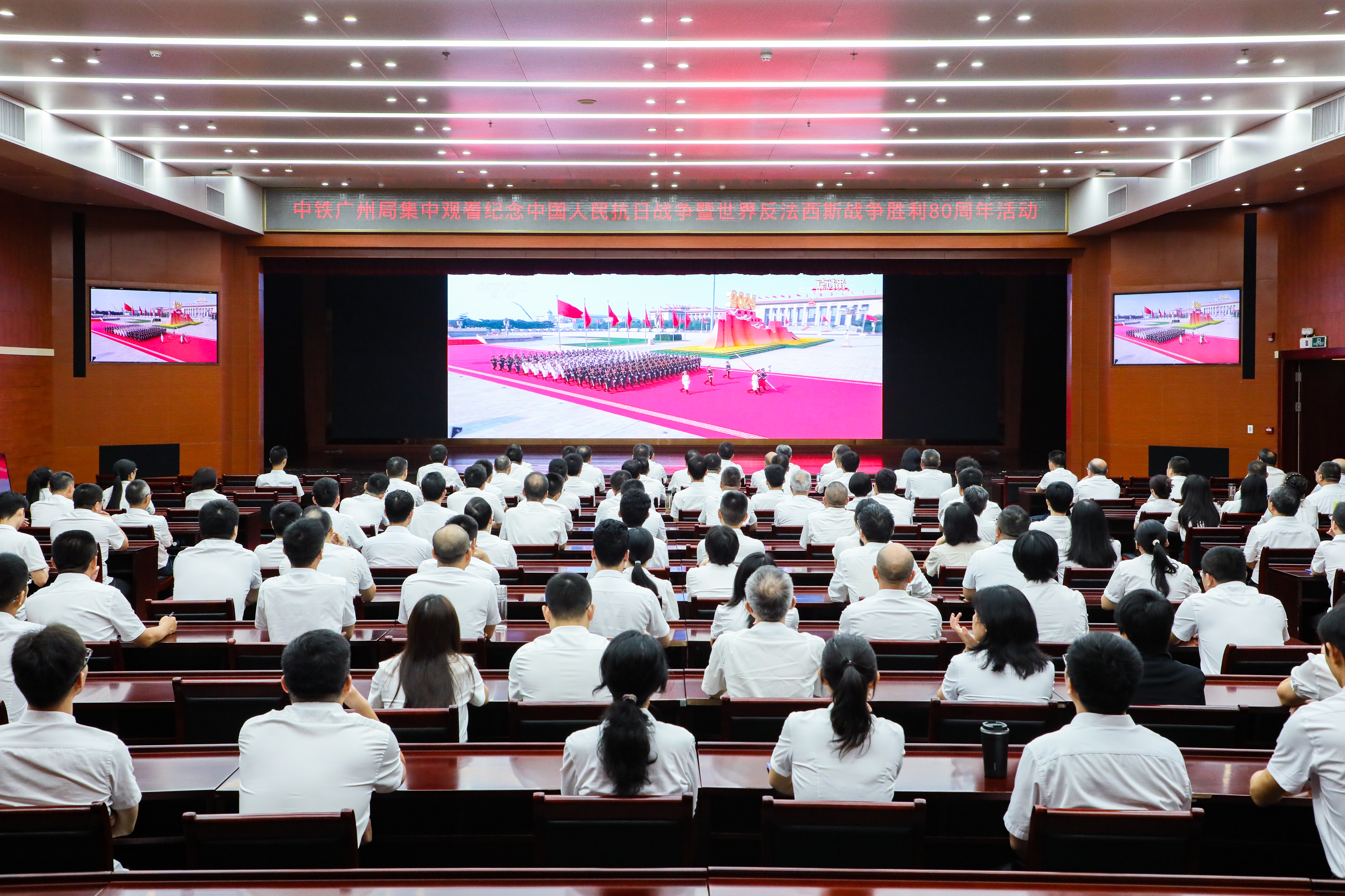 廣州市建筑業聯合會組織秘書處全體員工集體觀看這場盛大的慶典,激勵員工將民族自豪感轉化為推動行業高質量發展的實干動力。