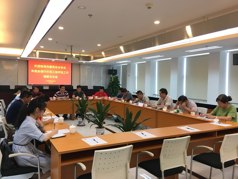 我會常桂枝副秘書長代表廣州市建筑業聯合會對客人到來表示熱烈歡迎,并介紹了聯合會的基本情況。我會行業部王濃斯主任向建筑同行們介紹了廣州開展安全文明施工樣板工地、示范工地活動的歷史及目前工地評選工作的基本做法。客人向我會也介紹了珠海市目前創建示范工地的情況,對我會的規范運作表示贊賞。