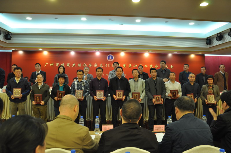 會(huì)議表彰階段,楊家峰會(huì)長(zhǎng)代表理事會(huì)宣讀了《廣州市建筑業(yè)聯(lián)合會(huì)關(guān)于對(duì)指導(dǎo)、支持、促進(jìn)聯(lián)合會(huì)工作業(yè)內(nèi)老同志的感謝信》,感謝30年來(lái)為我會(huì)的建設(shè)和發(fā)展付出大量心血的歷屆老領(lǐng)導(dǎo)、老同志。副會(huì)長(zhǎng)廖曉明、李中慶、梁亮、吳險(xiǎn)峰、鄭龍輝、尹穗、孫超美分別宣讀了我會(huì)關(guān)于表彰優(yōu)秀企業(yè)、優(yōu)秀企業(yè)家、優(yōu)秀項(xiàng)目經(jīng)理、資深專家、優(yōu)秀專家、質(zhì)量創(chuàng)優(yōu)先進(jìn)單位、安全文明施工創(chuàng)建先進(jìn)單位、質(zhì)量管理小組活動(dòng)先進(jìn)單位和個(gè)人、新技術(shù)應(yīng)用先進(jìn)單位、會(huì)員單位優(yōu)秀工作者等決定的文件,并向獲獎(jiǎng)單位和個(gè)人頒獎(jiǎng)。會(huì)議向新當(dāng)選的常務(wù)理事和理事頒牌。