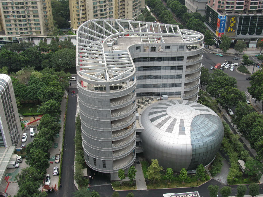 醫療樓和科研樓的整體建筑立面外形為多曲面、球體的結構造型,對于混凝土結構和建筑裝飾施工來說,施工放線的圓曲面控制、整體垂直控制難度大。