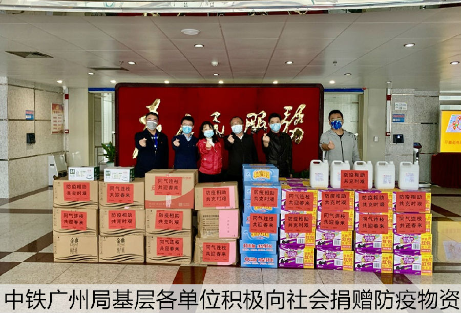——強(qiáng)化使命擔(dān)當(dāng),積極開展捐贈(zèng)活動(dòng)。疫情發(fā)生以來,中鐵廣州局心系防疫一線,彰顯央企責(zé)任擔(dān)當(dāng),各級(jí)組織提高政治站位,把支援地方抗“疫”工作作為光榮使命來踐行。局機(jī)關(guān)本部向?qū)俚啬仙硡^(qū)先后3批次捐贈(zèng)防護(hù)物資,盡全力幫助一線緩解防控物資短缺現(xiàn)狀。局屬各單位及項(xiàng)目部通過境內(nèi)、外資源渠道,購買防護(hù)物資進(jìn)捐贈(zèng),援助安全防護(hù)欄等物資,建成隔離病房向?qū)俚蒯t(yī)院捐建,幫助當(dāng)?shù)貒稳藛T密集區(qū)。局黨委積極組織黨員抗疫捐款30.0576萬元。同時(shí),密切聯(lián)系身處疫區(qū)相關(guān)職工和家屬,經(jīng)常聯(lián)絡(luò),保持愛心暢通,消除信息孤島,防止精神孤寂,并寄送健康防護(hù)物資,肩負(fù)起央企的責(zé)任擔(dān)當(dāng)。截至目前,中鐵廣州局向社會(huì)累計(jì)捐贈(zèng)防護(hù)服2765套、手套42450付、口罩42480支,以及一大批消毒、生活、建筑材料等物資,為打贏疫情防控阻擊戰(zhàn)貢獻(xiàn)中鐵力量。