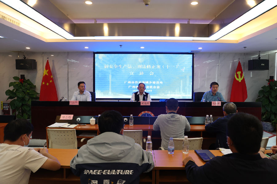 為準(zhǔn)確領(lǐng)會(huì)新頒布施行的《中華人民共和國(guó)安全生產(chǎn)法》(2021年修正)和《刑法修正案(十一)》的內(nèi)涵實(shí)質(zhì),推動(dòng)廣大施工企業(yè)在生產(chǎn)經(jīng)營(yíng)活動(dòng)中懂法守法。12月16日,市住房城鄉(xiāng)建設(shè)局與廣州市建筑業(yè)聯(lián)合會(huì)聯(lián)合舉辦《中華人民共和國(guó)安全生產(chǎn)法》《刑法修正案(十一)》宣講會(huì),并邀請(qǐng)廣州市安全生產(chǎn)監(jiān)督管理局原局長(zhǎng)俞述西同志對(duì)我市主要施工企業(yè)相關(guān)負(fù)責(zé)人進(jìn)行宣貫培訓(xùn)。市住房城鄉(xiāng)建設(shè)局質(zhì)安處曾慶鵬副處長(zhǎng)主持宣貫會(huì),市建筑業(yè)聯(lián)合會(huì)張江華副秘書(shū)長(zhǎng)及全市45家施工企業(yè)共60余人參加了會(huì)議。