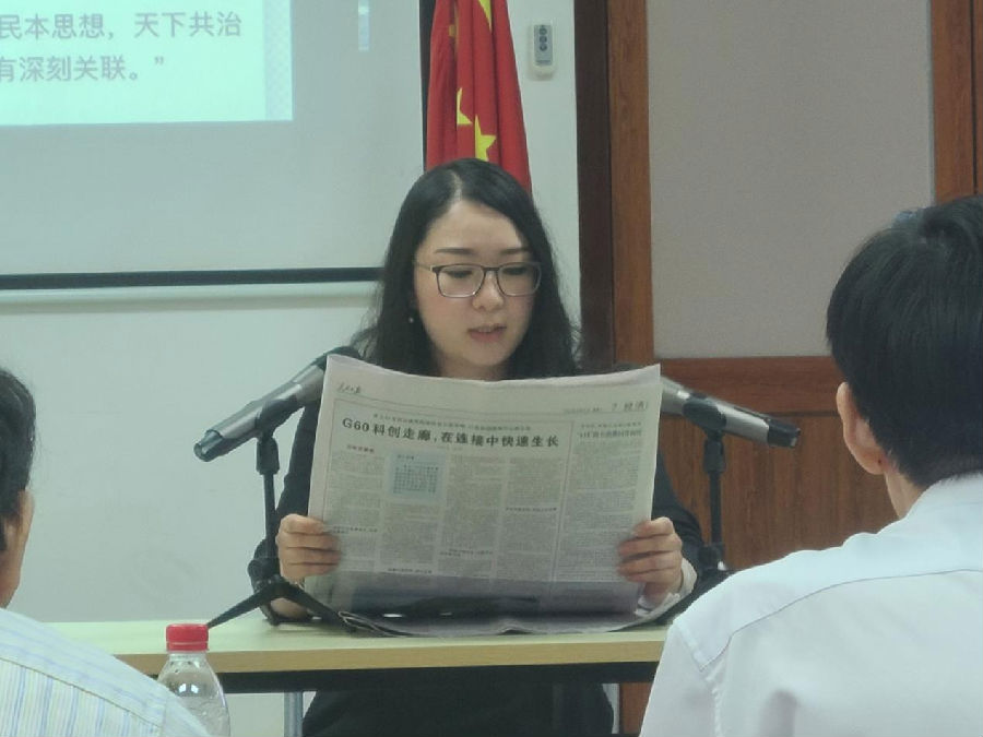 最后,由廣州市組織管理局、華南國家植物園、人民日報華南報業發?部各派出代表上臺讀《人民日報》有關篇目原文,進一步學習領會習近平新時代中國特色社會主義思想的世界觀和方法論,引導學員自覺運用貫穿其中的立場觀點方法觀察時代、把握時代,分析問題、解決問題。