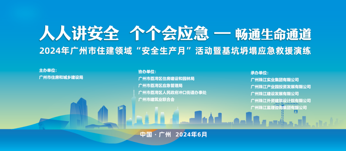 2024年6月是全國第23個“安全生產月”,為深入學習貫徹習近平總書記關于安全生產的重要論述和重要指示批示精神,6月27日由廣州市住房和城鄉建設局主辦,廣州市荔灣區住房建設和林園局、廣州市荔灣區應急管理局、廣州市荔灣區人民政府沖口街道辦事處、廣州市建筑業聯合會協辦,廣州珠江建設發展有限公司承辦的廣州市住建領域“安全生產月”活動暨基坑坍塌應急救援演練活動,在廣州市荔灣區聚龍灣項目成功舉辦。廣州市各地市相關部門、行業協會、施工企業有關負責人等300余人參加觀摩活動。