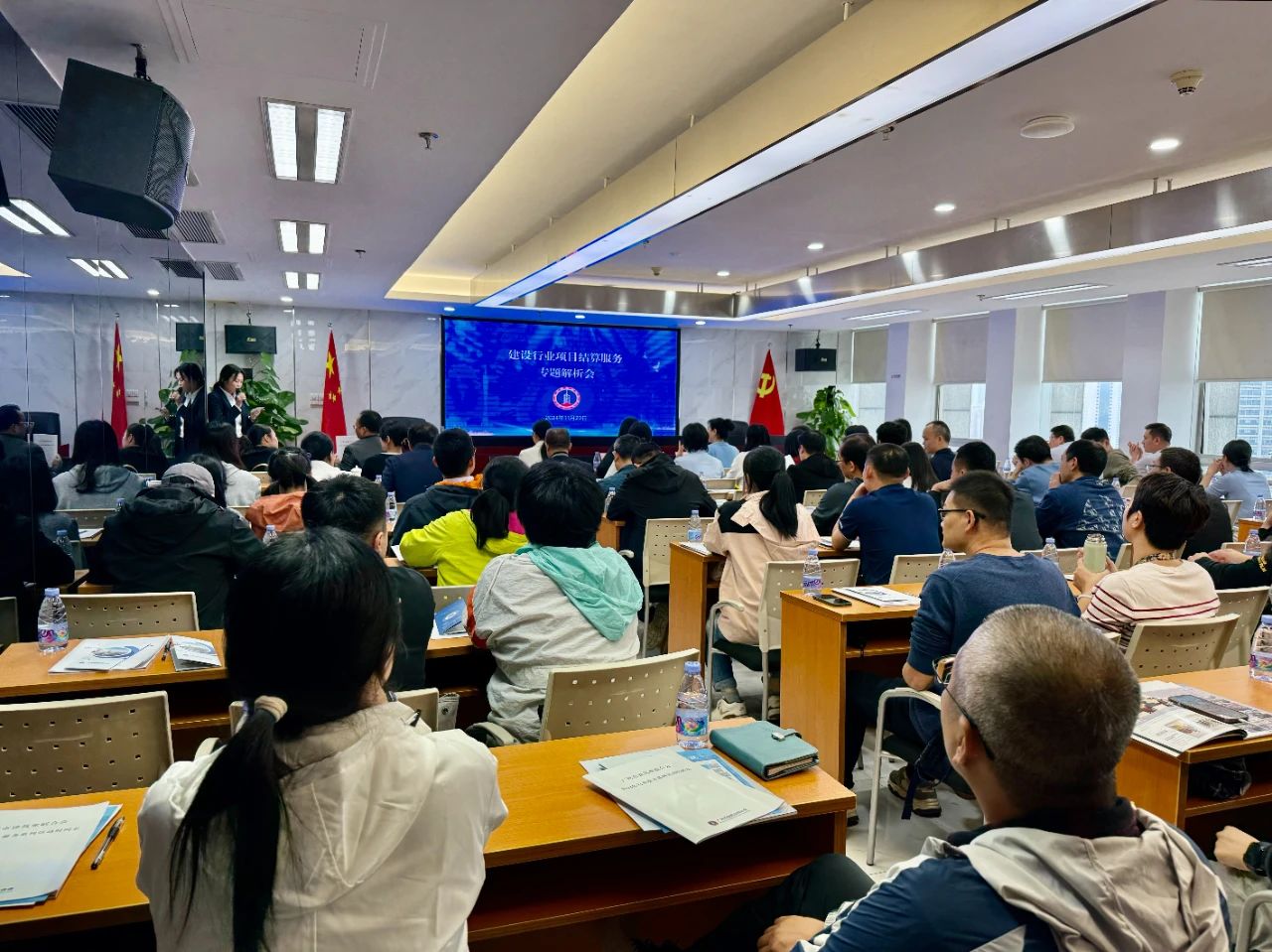 為提高廣州市建設行業項目施工控價與結算管理水平,促進項目資金的安全流轉與成本控制,11月20日下午,建設行業項目結算服務專題解析會在我會大會議室順利舉辦。活動旨在助力廣州市建筑企業提升工程項目施工控價與結算管理的能力,確保工程項目的結算工作規范、準確、高效,并促進項目資金的安全流轉與成本控制。廣州市建設工程造價管理站四級調研員來丹生,廣州市建筑業聯合會副秘書長邵丹,廣東方道律師事務所主任黃愛靜,以及各施工單位成本與結算分管領導、項目負責人、財務負責人、成本和造價工程師等近100人參加會議。
