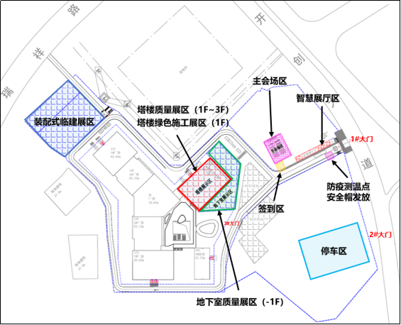 請各參會人員根據觀摩會總平面布置圖,在1#大門入口處進行防疫體溫檢測、領取安全帽,在簽到區簽到后主會場區等候觀摩會的召開。