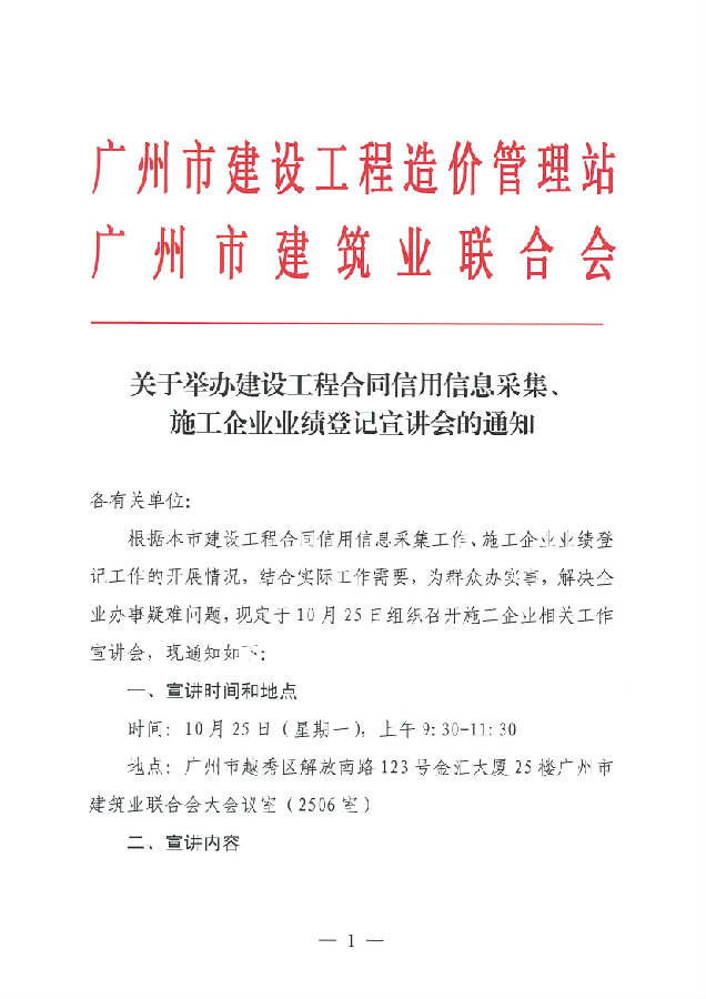 關于舉辦建設工程合同信用信息采集、施工企業業績登記宣講會的通知